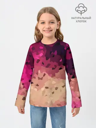 Детский лонгслив / Бежево-малиновый абстрактный