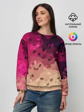 Женский свитшот / Бежево-малиновый абстрактный