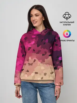 Женское худи / Бежево-малиновый абстрактный