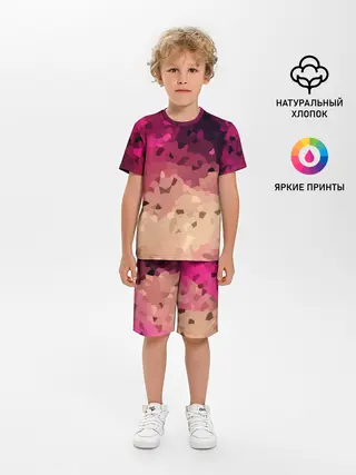 Детская пижама с шортами / Бежево-малиновый абстрактный