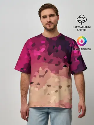 Мужская футболка оверсайз / Бежево-малиновый абстрактный
