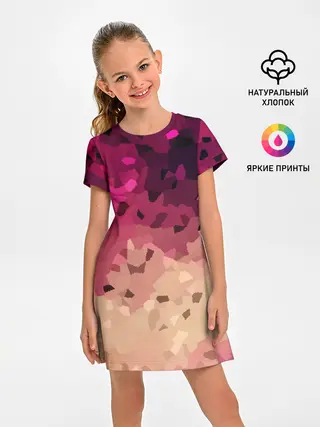 Детское платье / Бежево-малиновый абстрактный