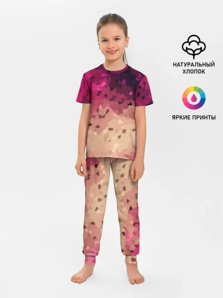 Детская пижама с брюками / Бежево-малиновый абстрактный