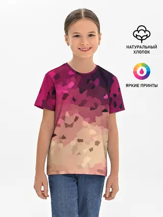 Детская базовая футболка / Бежево-малиновый абстрактный