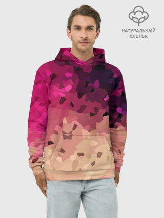 Худи мужской база хлопок / Бежево-малиновый абстрактный