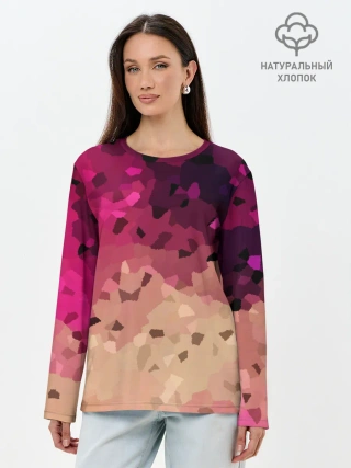 Лонгслив женский. Хлопок / Бежево-малиновый абстрактный