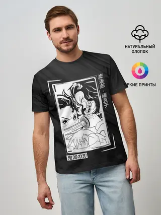 Мужская базовая футболка / Танджиро и Незуко Kimetsu no Yaiba