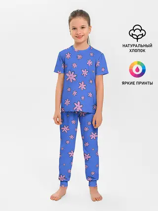 Детская пижама с брюками / Цветочки рисованные