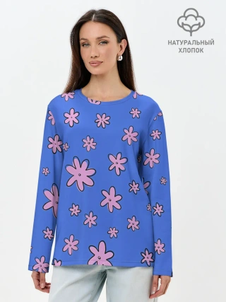 Лонгслив женский. Хлопок / Цветочки рисованные