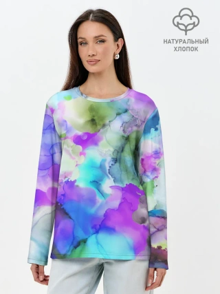 Лонгслив женский. Хлопок / Акварельная краска