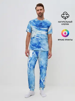 Мужская пижама с брюками / Вода акварель