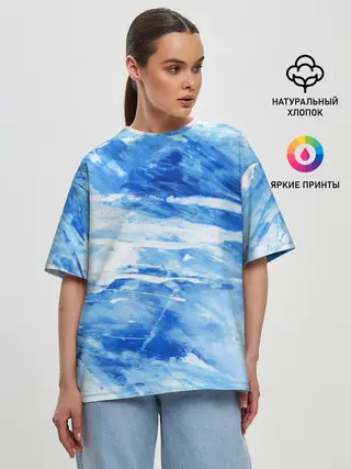 Женская футболка оверсайз / Вода акварель