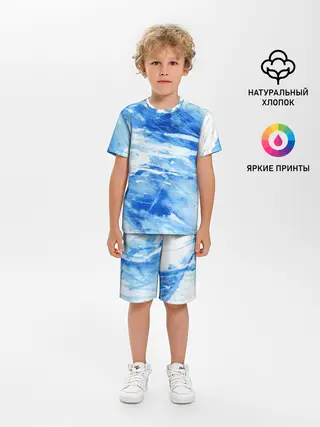 Детская пижама с шортами / Вода акварель