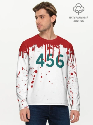 Мужской лонгслив базовый / ИГРА В КАЛЬМАРА ПЕРСОНАЖ 456 КРОВЬ