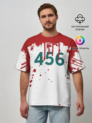 Мужская футболка оверсайз / ИГРА В КАЛЬМАРА ПЕРСОНАЖ 456 КРОВЬ