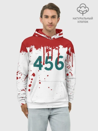 Худи мужской база хлопок / ИГРА В КАЛЬМАРА ПЕРСОНАЖ 456 КРОВЬ