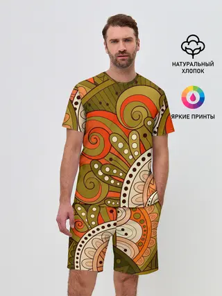 Мужской костюм с шортами / Детский оранжево-болотный