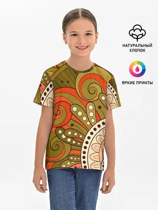 Женская базовая футболка / Детский оранжево-болотный