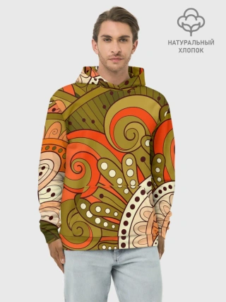 Худи мужской база хлопок / Детский оранжево-болотный
