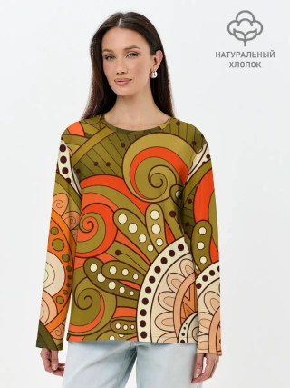 Лонгслив женский. Хлопок / Детский оранжево-болотный