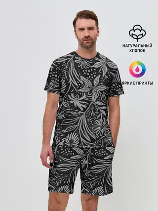 Мужской костюм с шортами / Флора | Черно Белая