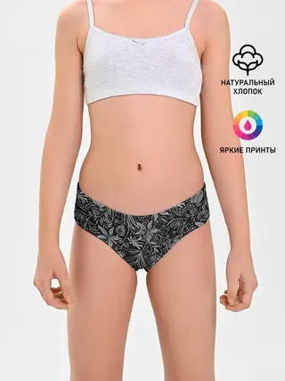 Трусы для девочек / Флора | Черно Белая