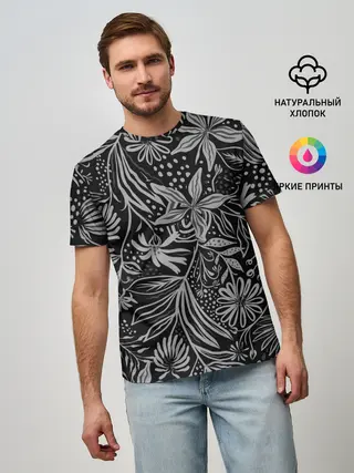 Мужская базовая футболка / Флора | Черно Белая