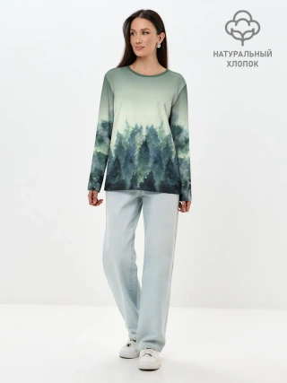 Лонгслив женский. Хлопок / акварельный лес градиент