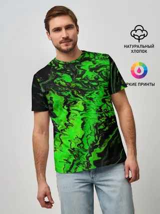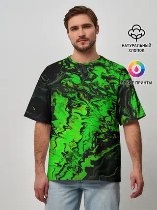 Мужская футболка оверсайз / Тёмные зеленые краски