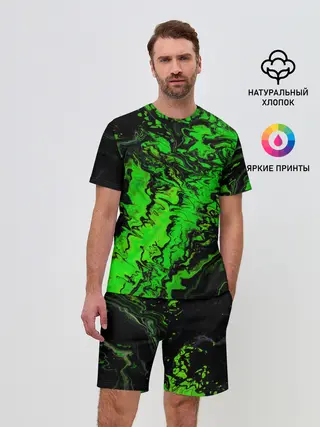 Мужской костюм с шортами / Тёмные зеленые краски