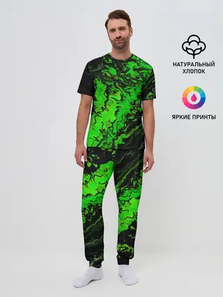 Мужская пижама с брюками / Тёмные зеленые краски