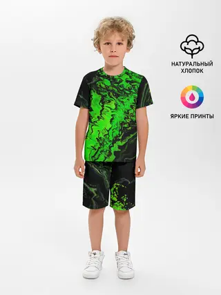 Детская пижама с шортами / Тёмные зеленые краски