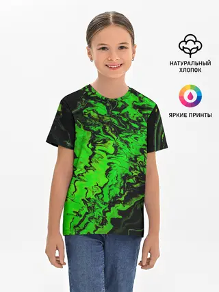 Детская базовая футболка / Тёмные зеленые краски