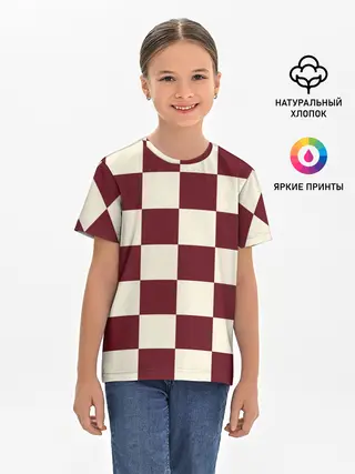 Женская базовая футболка / Бежево-малиновый абстрактный