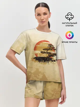 Женская пижама с шортами / Дерево на закате