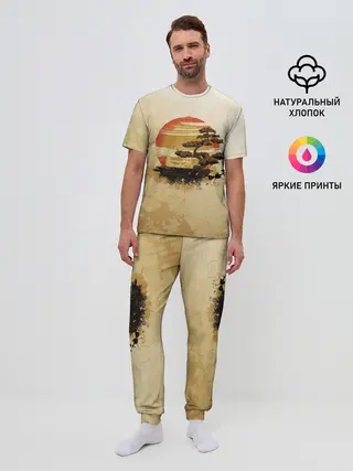 Мужская пижама с брюками / Дерево на закате