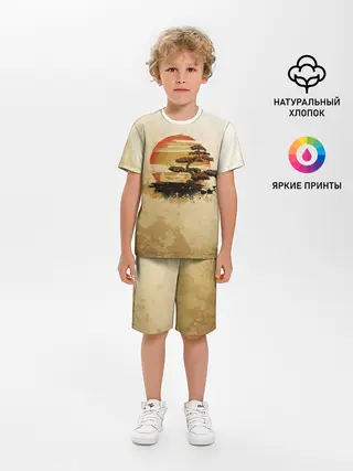 Детская пижама с шортами / Дерево на закате