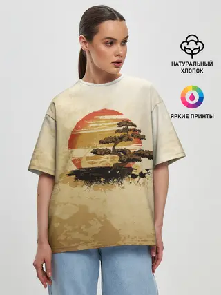Женская футболка оверсайз / Дерево на закате