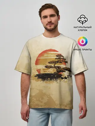 Мужская футболка оверсайз / Дерево на закате