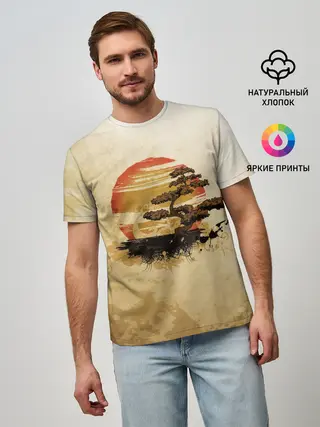 Мужская базовая футболка / Дерево на закате