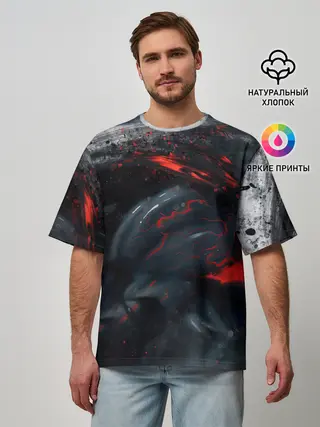 Мужская футболка оверсайз / ЧЁРНЫЙ СИМБИОТ / ГРАНЖ / BLACK MONSTER
