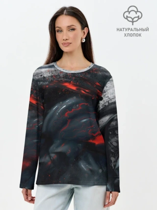 Лонгслив женский. Хлопок / ЧЁРНЫЙ СИМБИОТ / ГРАНЖ / BLACK MONSTER