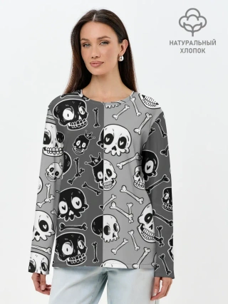 Лонгслив женский. Хлопок / Черепа