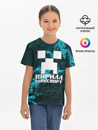 Детская базовая футболка / Кирилл в стиле Minecraft