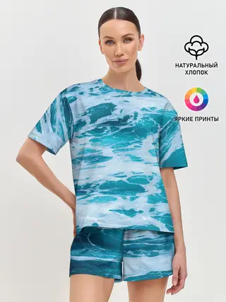 Женская пижама с шортами / Вода волны пена море