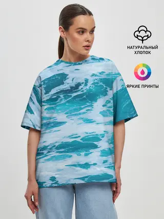 Женская футболка оверсайз / Вода волны пена море