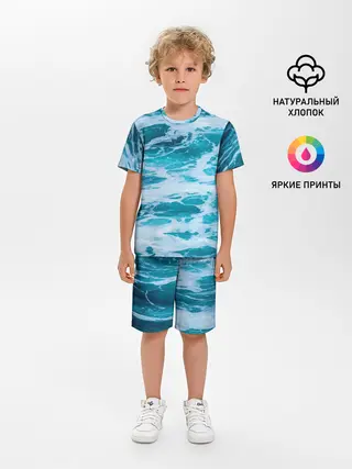 Детская пижама с шортами / Вода волны пена море
