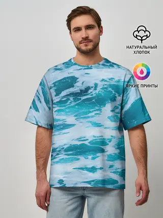 Мужская футболка оверсайз / Вода волны пена море