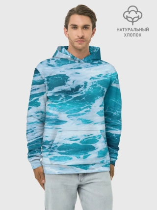 Худи мужской база хлопок / Вода волны пена море