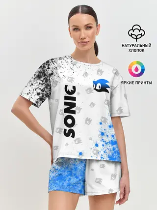 Женская базовая футболка / SONIC BLUE PATTERN | СИНИЙ ЁЖ
